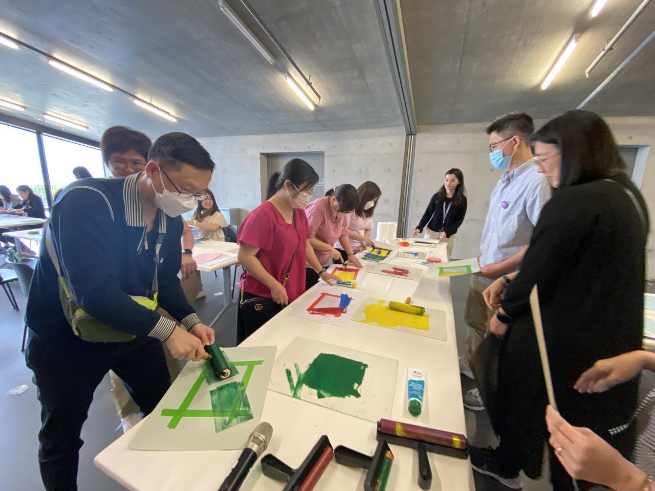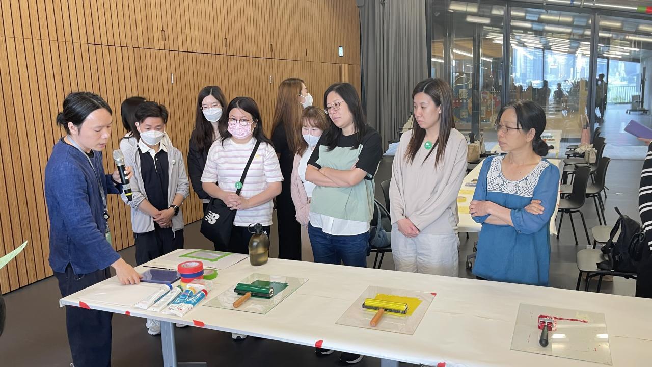 為加強教師專業角色身份,本校於4月12日的教師專業發展日舉辦了M+教師專業發展工作坊。各個老師到訪西九文化區的M+,以「多角度思考」體驗藝術品與教學工作的共通點。老師首先選擇一種屬於自己的顏色,共同探索教學工作與M+藏品的關係,然後參觀展廳欣賞藏品,最後老師將心中想像化成圖像,創作獨一無二的卡片。老師們不但享受當天的體驗,而且能盡情發揮創意,製作自己的藝術品。