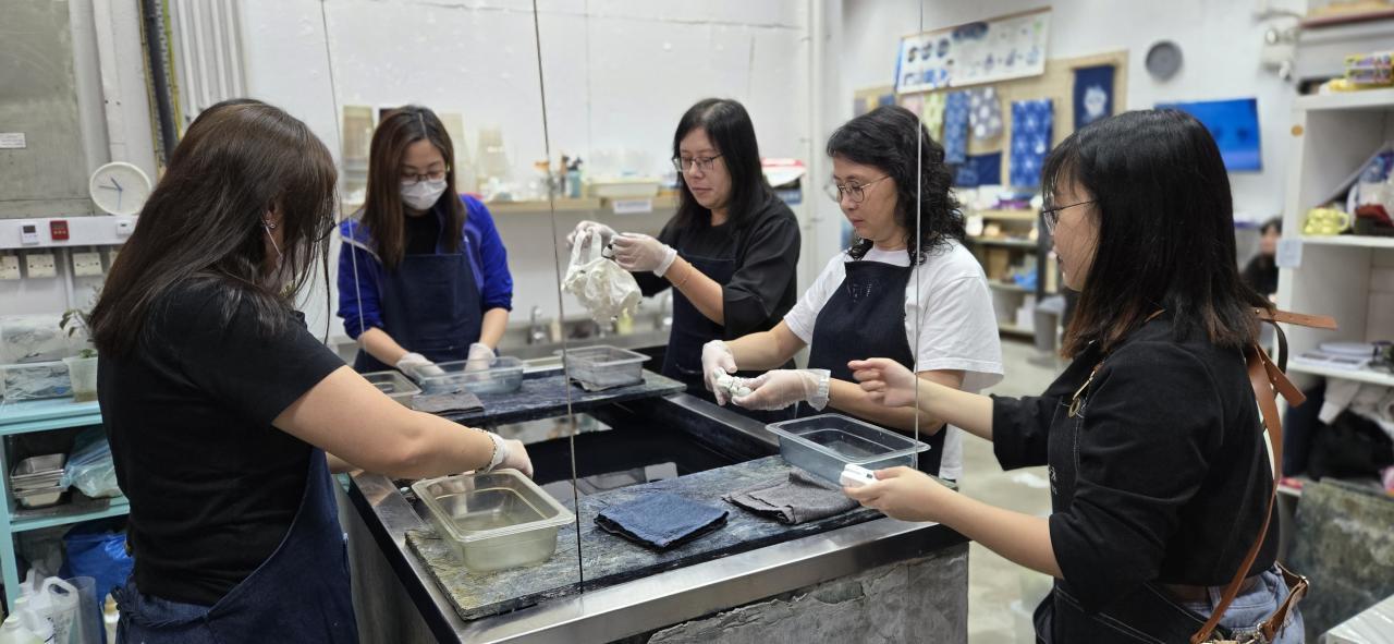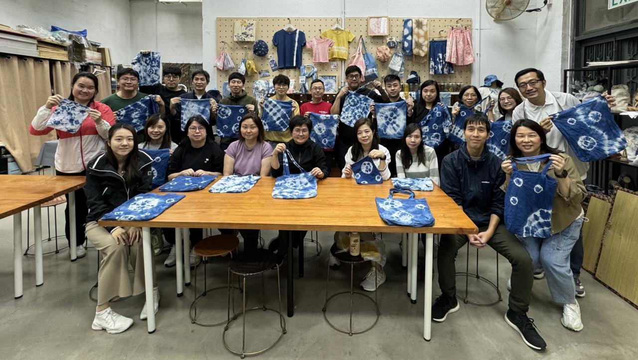 11月19日的教師專業發展日,活動為「天然紮染工作坊」。透過紮染藝術,讓老師認識中國傳統的工藝文化,也認識了不同植物染料的由來。在工作坊中,老師投入於手工藝創作,不僅體驗中國傳統文化的魅力,也增進了老師之間的合作與交流,同時也讓心情得到舒緩,收穫豐盛。