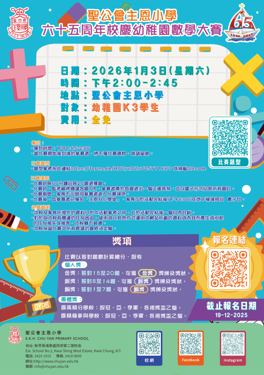 六十五周年校慶幼稚園數學大賽及主恩升小學堂